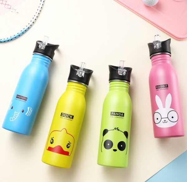 Przyda się nie tylko do szkoły, ale również podczas rodzinnych spacerów i wycieczek. Posiada wygodny zamykany ustnik oraz słomkę, ułatwiającą dziecku samodzielne picie, nakrętkę z uszczelką i uchwytem oraz silikonową nakładkę na dolną część, dzięki której nie rysuje powierzchni oraz jest bardziej odporny na ewentualne upadki. Bidon zdobi grafika zwierzątka.