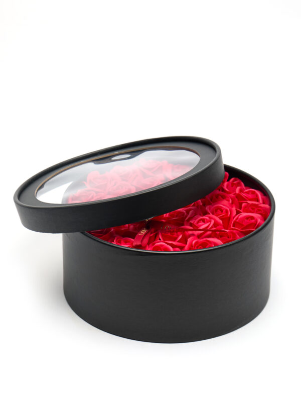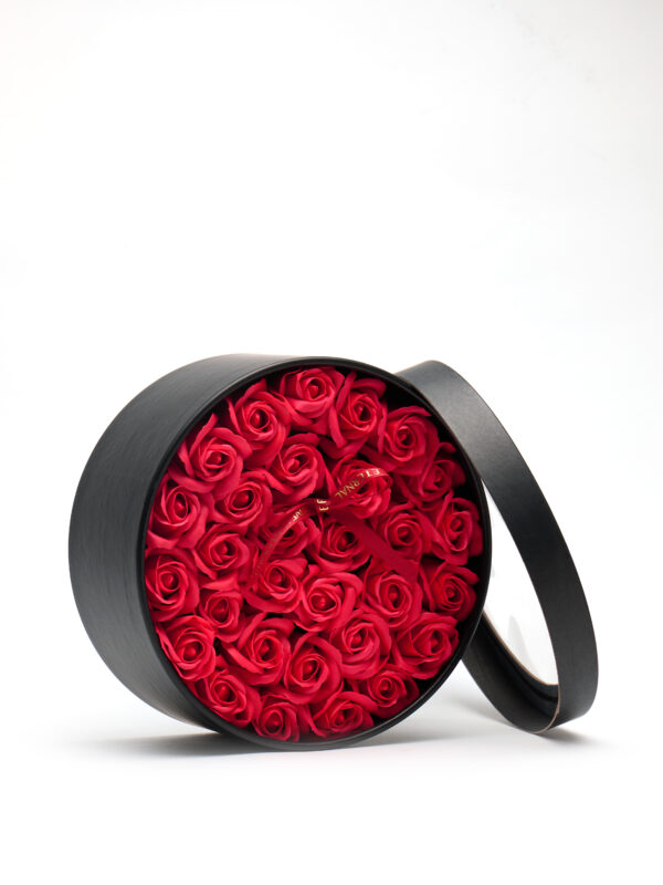 FLOWERBOX Z KWIATAMI MYDLANYM 28 szt UPOMINEK na walentynki KWIATY RÓŻE MYDLANE