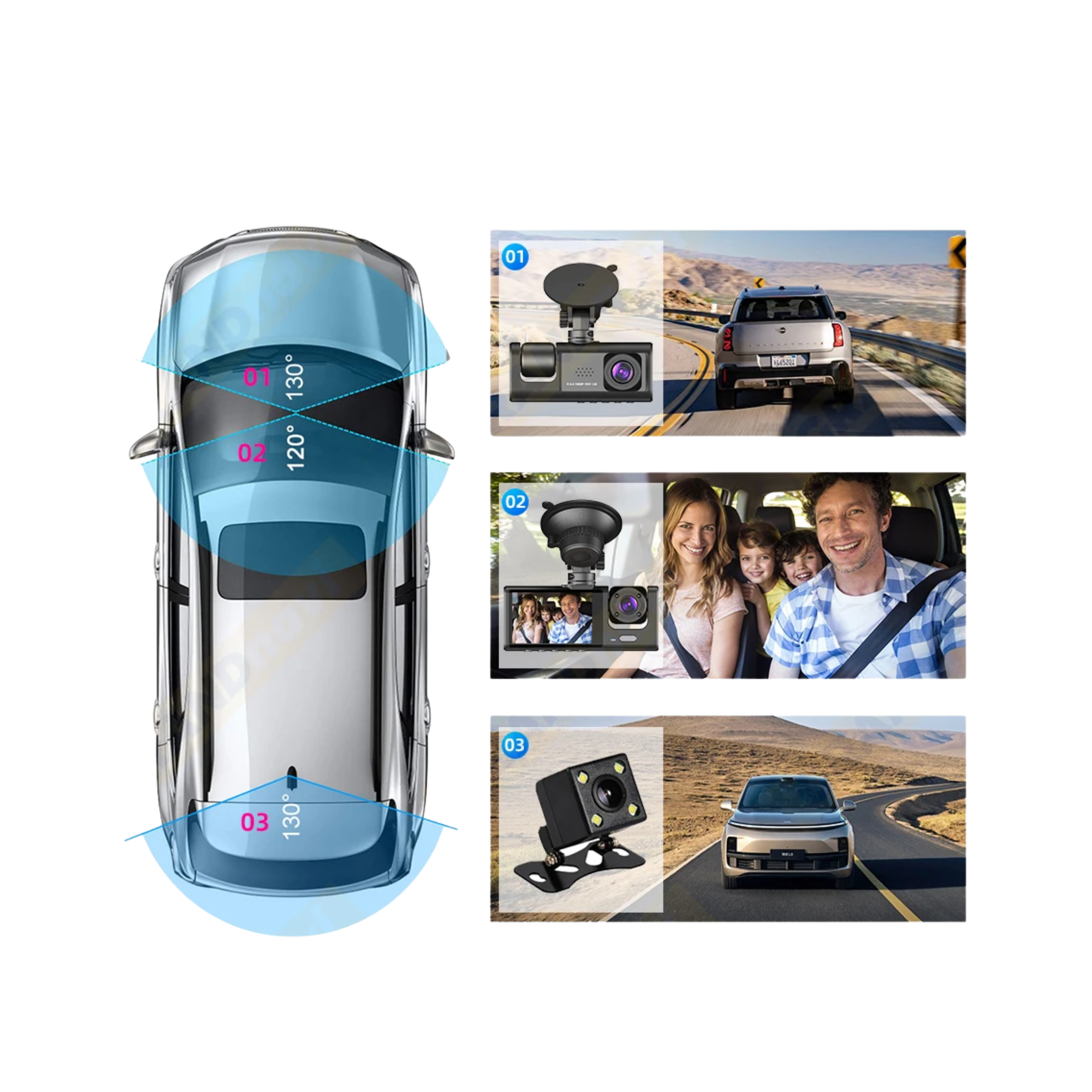 - Kompleksowa ochrona: Trzy soczewki zapewniają pełne bezpieczeństwo, rejestrując każdą sytuację na drodze.