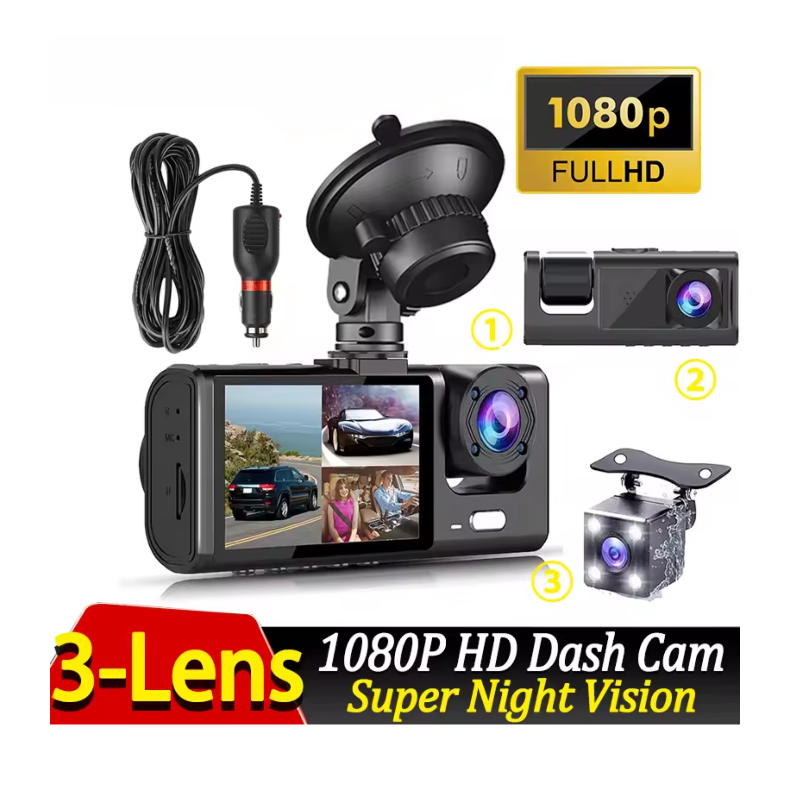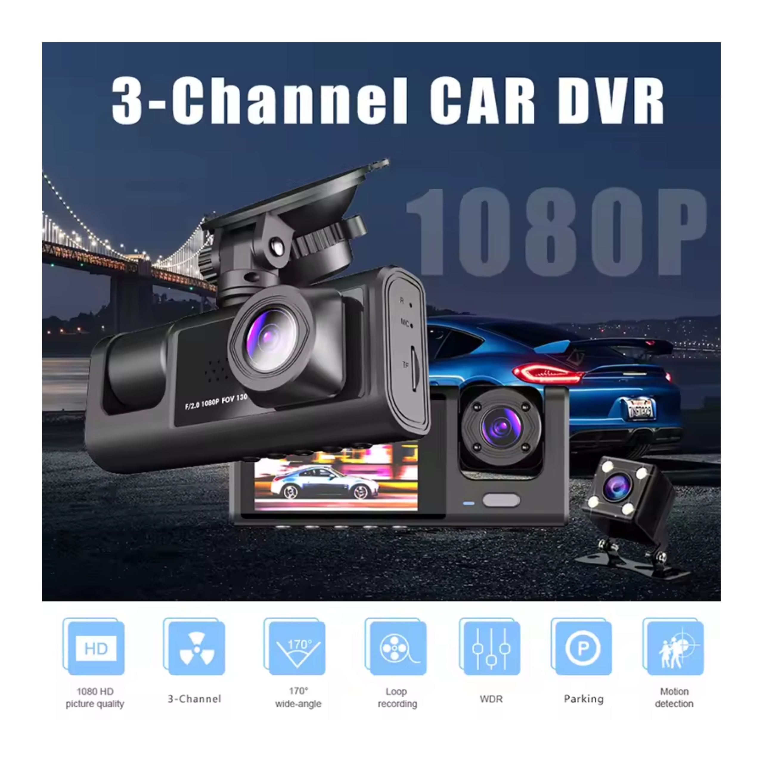 Trzykanałowy Wideorejestrator Samochodowy HD 1080P