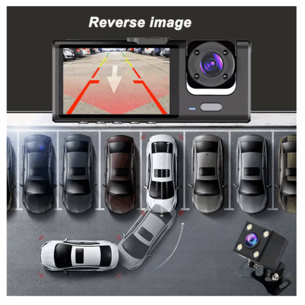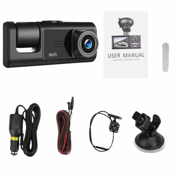 Zapraszamy do zapoznania się z naszym nowoczesnym trzykanałowym wideorejestratorem samochodowym HD 1080P, który jest idealnym rozwiązaniem dla każdego kierowcy, dbającego o bezpieczeństwo i komfort podróży. Wyposażony w trzy soczewki, urządzenie rejestruje obraz z przodu, wnętrza oraz tyłu pojazdu, zapewniając pełen obraz sytuacji na drodze.