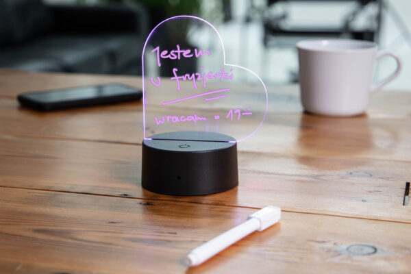 Świetne połączenie lampki nocnej z tablicą do pisania – to innowacyjne rozwiązanie, które łączy funkcjonalność i zabawę.