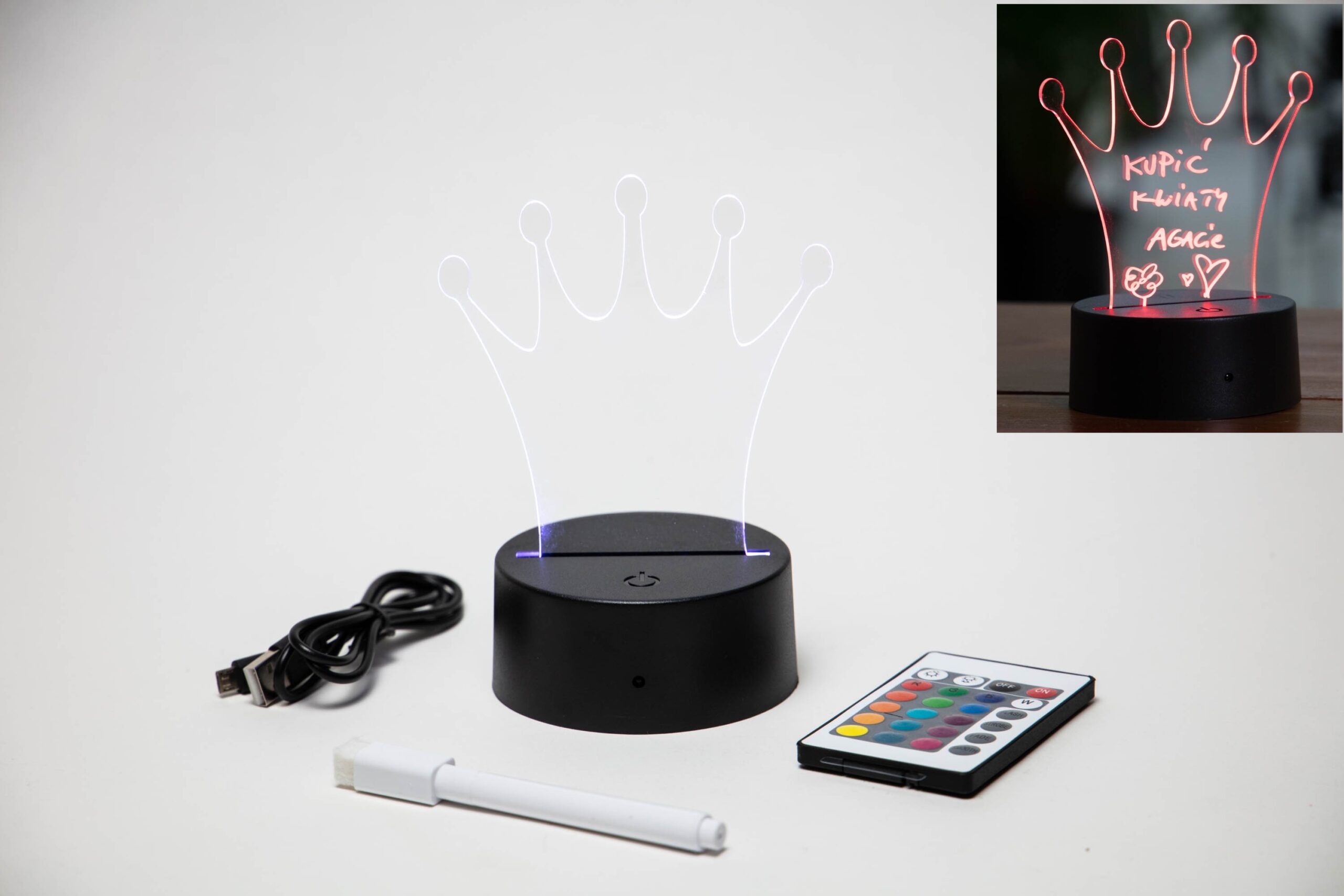 16 KOLORÓW PODŚWIETLENIA + PILOT + KABEL USB + PISAK ZMYWALNY