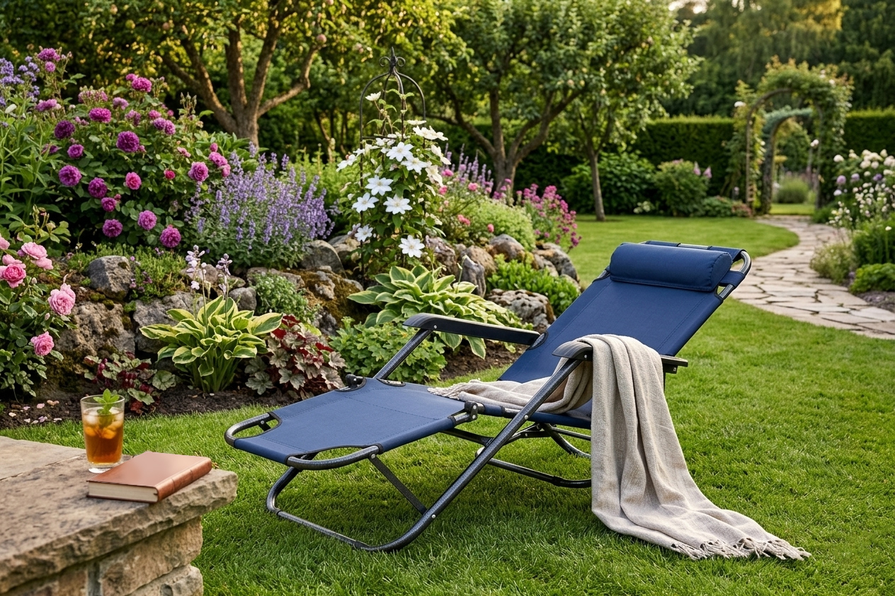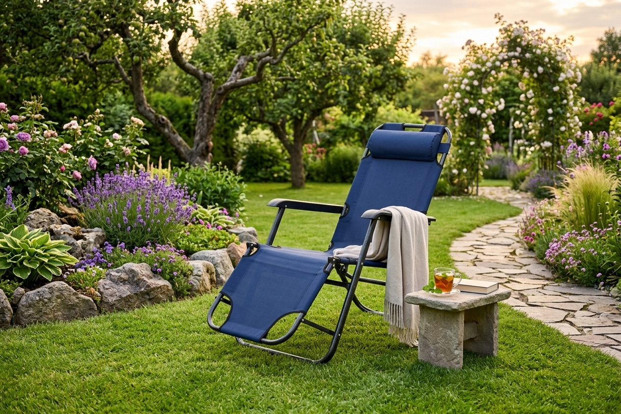 - 🎣 leżak na działkę, camping lub nad jezioro