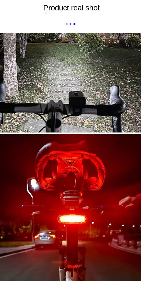 Mocna lampka przednia o jasności 1000 lm skutecznie oświetla drogę przed rowerzystą, a lampka tylna poprawia widoczność z tyłu, zwiększając bezpieczeństwo po zmroku i w trudnych warunkach pogodowych.