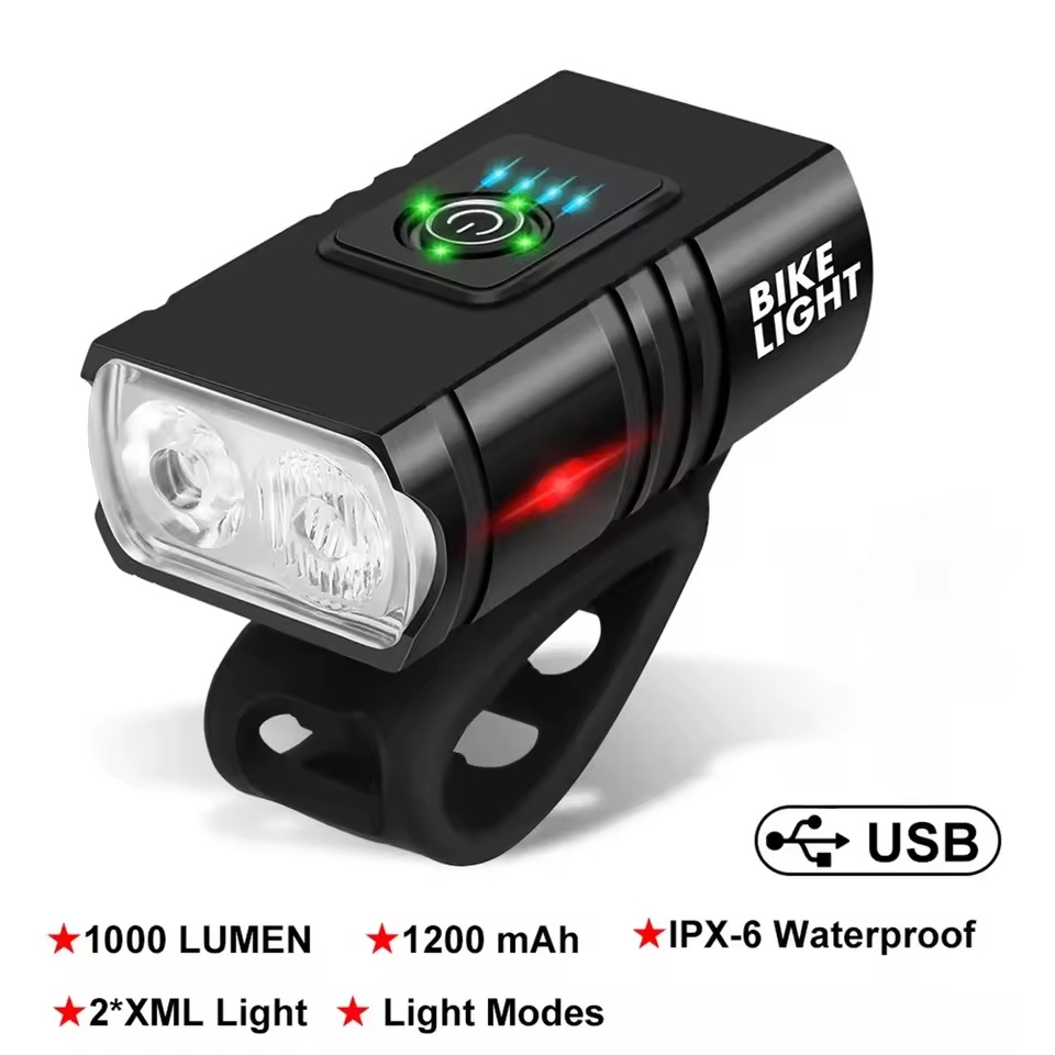 Lampka rowerowa LED przód 1000 lm + tylna | USB | Wodoodporna | 2x XML