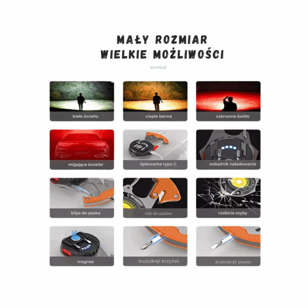 Odkryj niezwykle praktyczne i kompaktowe narzędzie survivalowe, które doskonale sprawdzi się w każdej sytuacji awaryjnej. Nasz produkt łączy w sobie wiele funkcji, które czynią go niezastąpionym towarzyszem każdej wyprawy. Jest to idealny wybór dla miłośników przygód, podróżników oraz osób ceniących sobie funkcjonalność i wygodę.