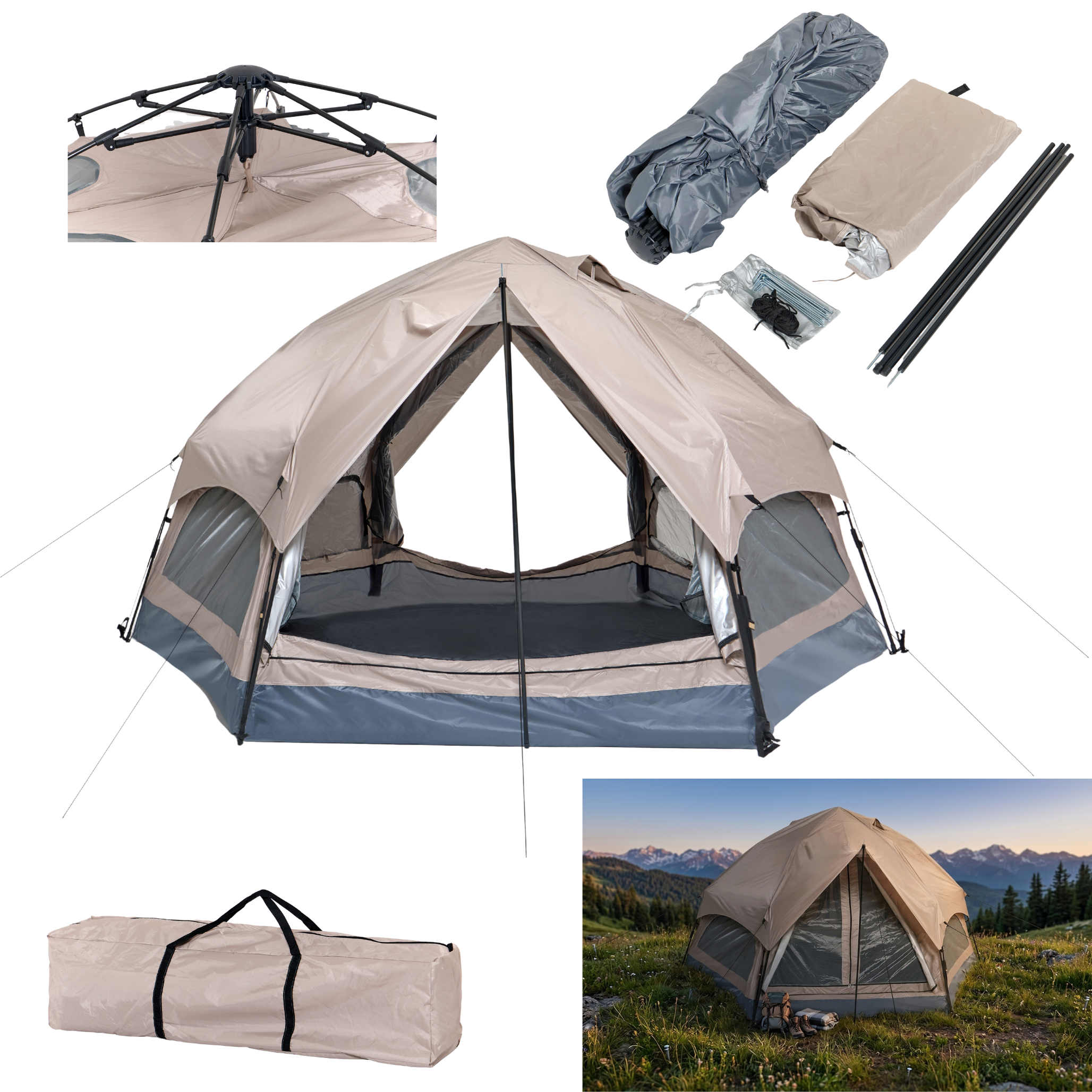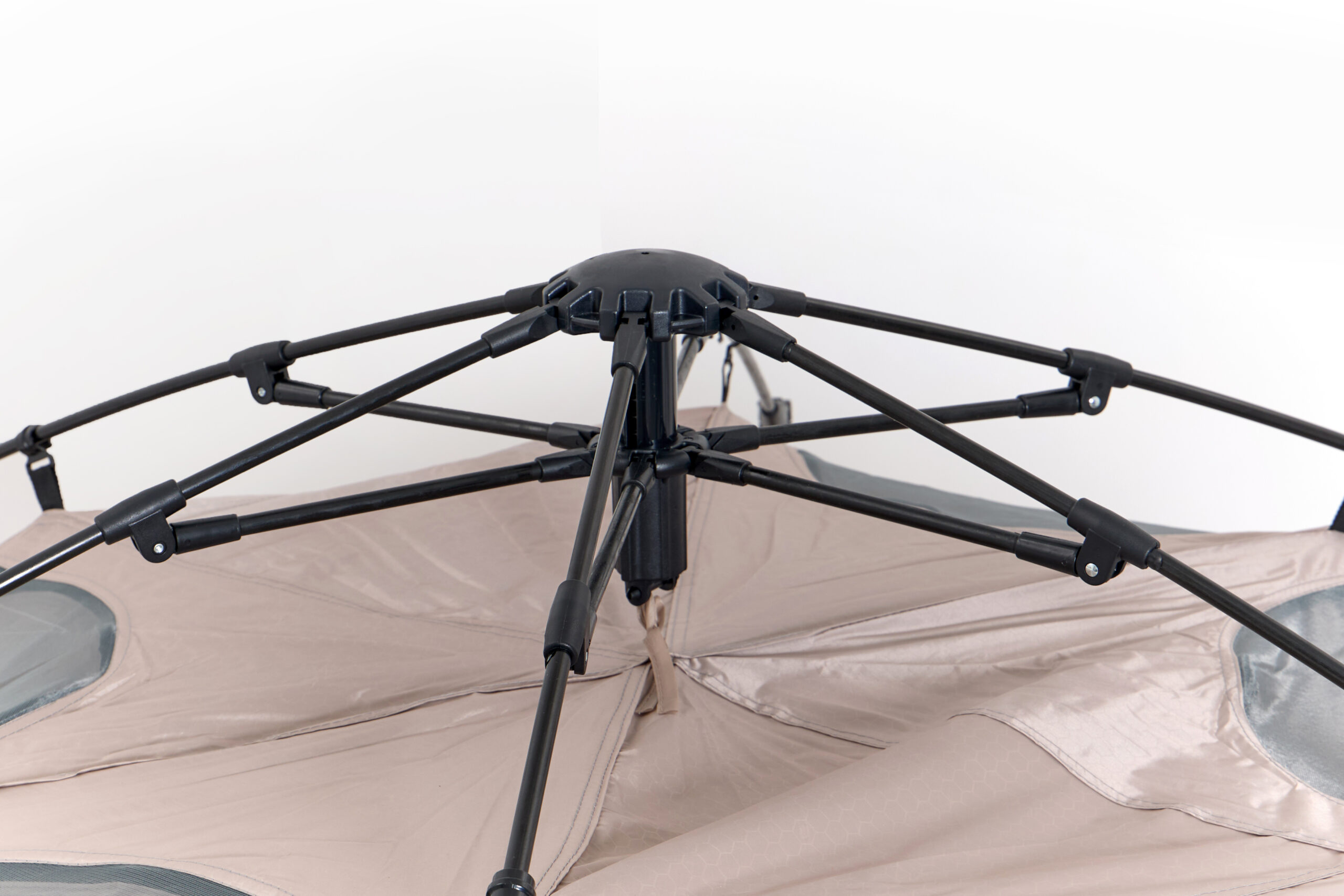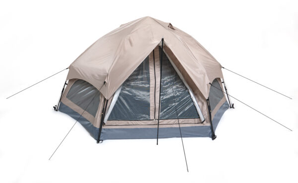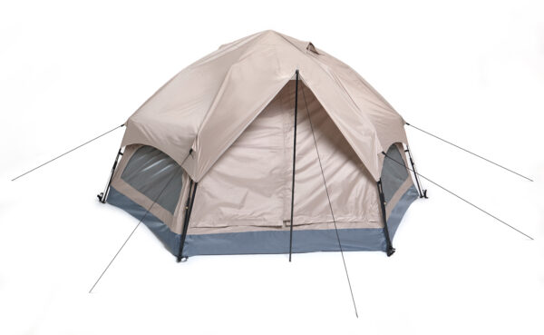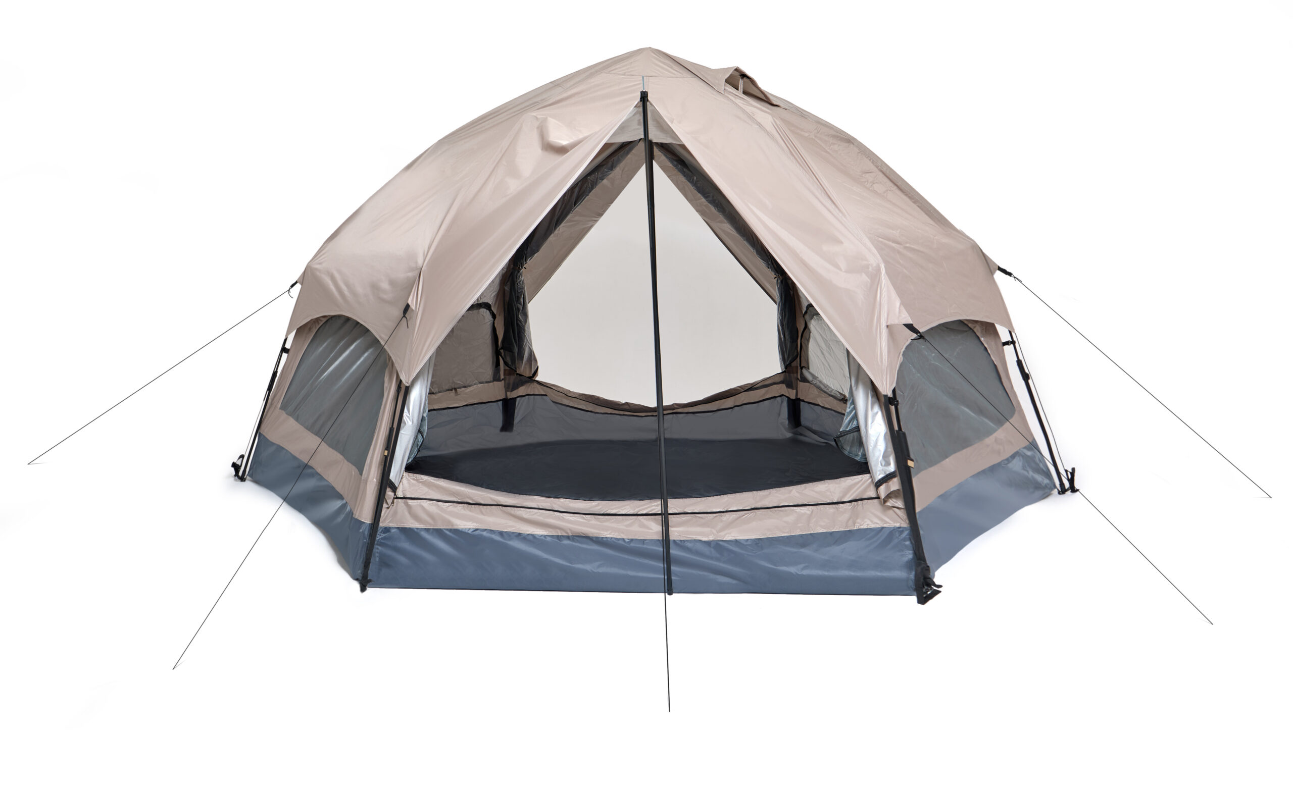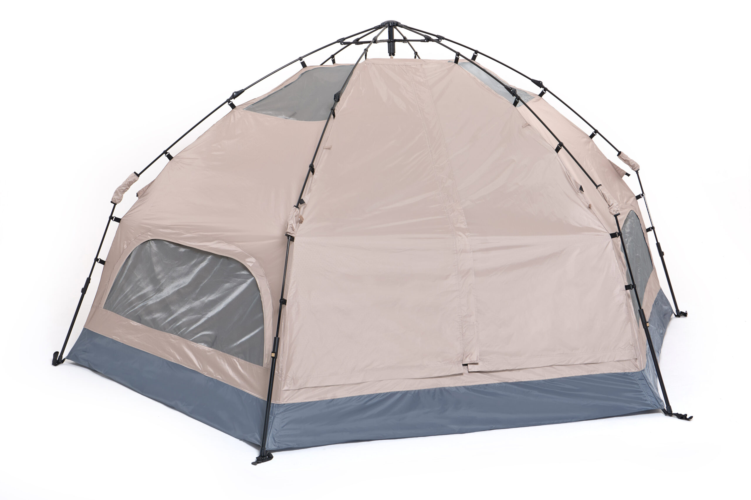 Dzięki automatycznemu systemowi rozkładania, namiot można przygotować do użytku szybko i sprawnie. Sześciokątna konstrukcja zapewnia więcej przestrzeni użytkowej, a podwójna warstwa materiału poprawia komfort, wentylację i ochronę podczas wypoczynku na świeżym powietrzu.