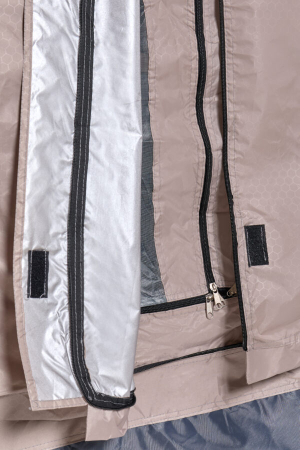 - ☀️ Materiał 210T poliester z powłoką srebrną – ogranicza nagrzewanie wnętrza i zwiększa ochronę