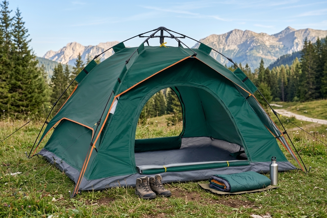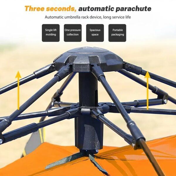 - Szybki montaż: Dzięki samorozkładającej się konstrukcji, namiot można postawić w zaledwie 5 sekund!