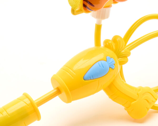 To proste. Odkręć korek i wlej wody do plecaka. Weź pistolet w ręce i do dzieła! Wodna zacznie lecieć po ruszeniu pompką.