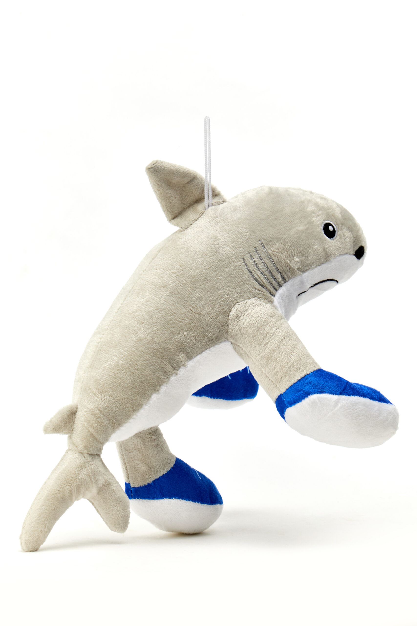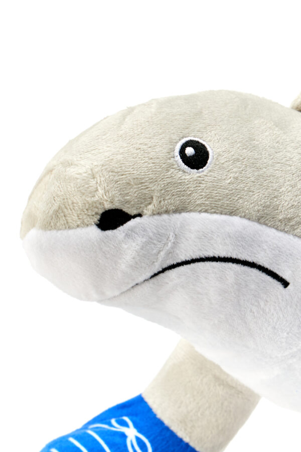 - 💙 Wyraziste kolory – szary rekin i niebiesko-białe buty
