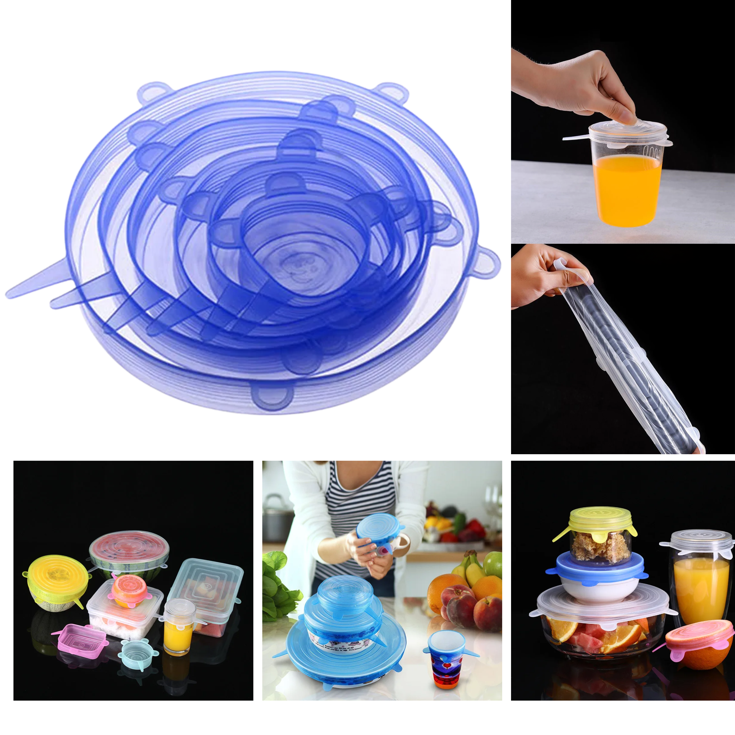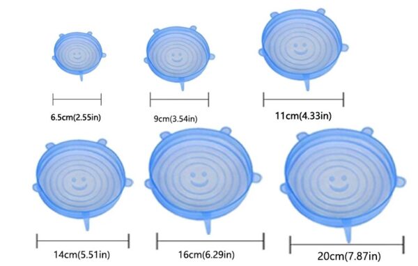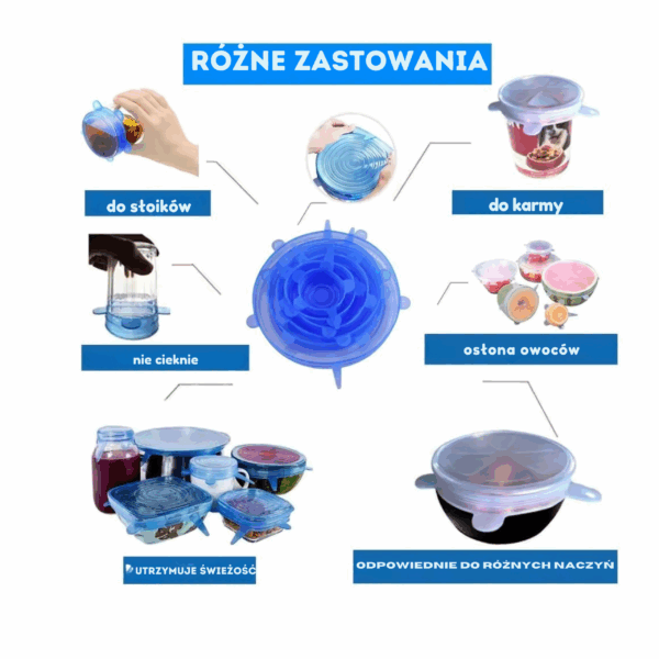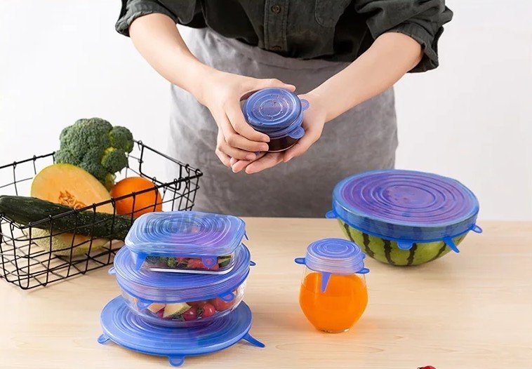 POKRYWKI SILIKONOWE UNIWERSALNE DO ŻYWNOŚCI – ZESTAW 6 SZTUK