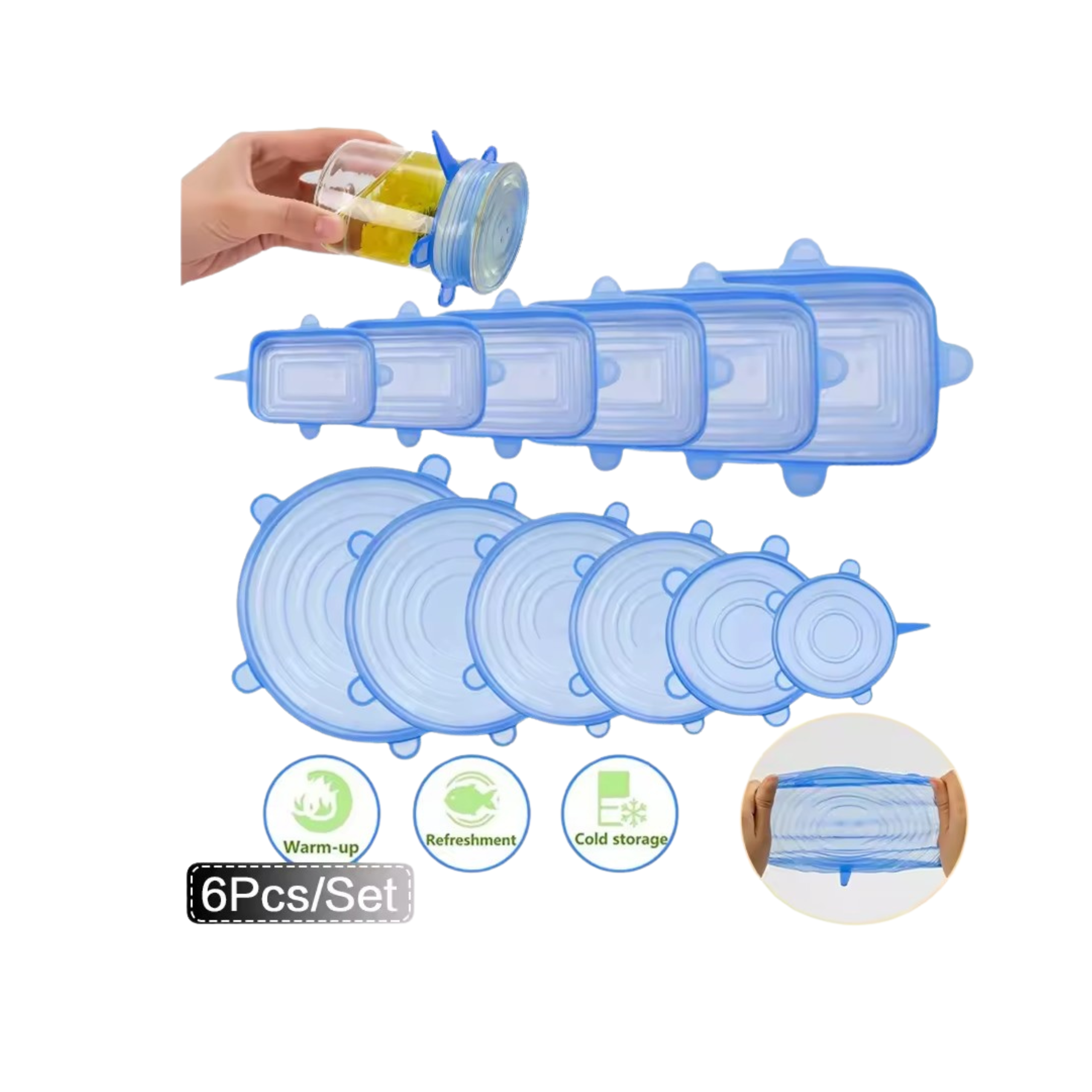 – Uniwersalne dopasowanie: Elastyczne i rozciągliwe, nasze pokrywki z łatwością dopasują się do naczyń o różnych kształtach i rozmiarach.