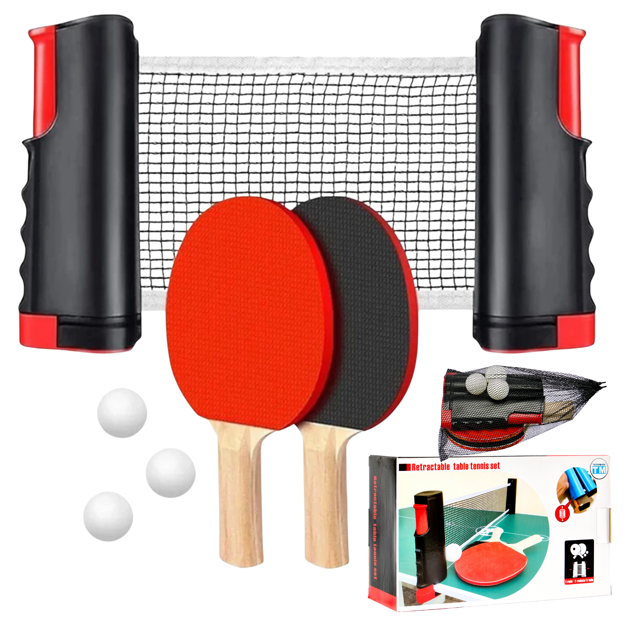 Przenośny Zestaw do PING -PONGA – siatka + 2 rakietki + 3 piłeczki