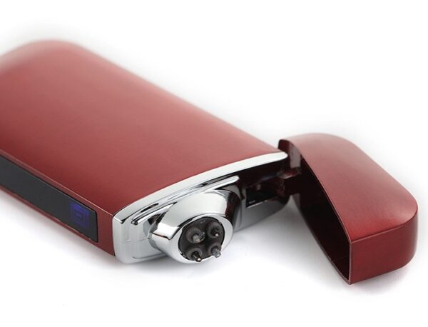 Podwójne łuki elektryczne wytwarzają wysoką temperaturę dzięki czemu przy kontakcie np. z papierosem powstaje płomień. Czas ładowania około 2h.